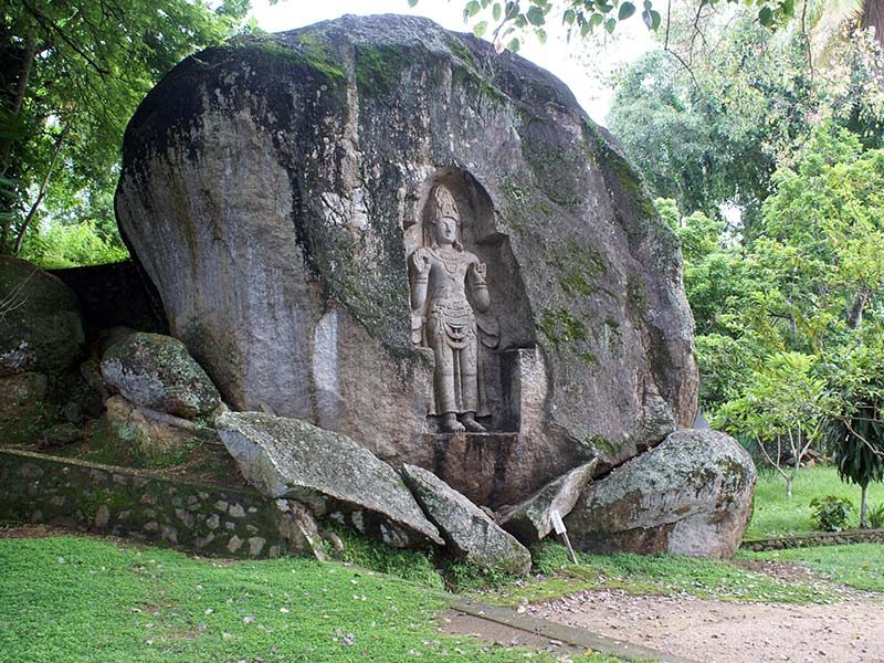 The Kushtarajagala can be reached successfully on Matara as it is located on the Weligama Divisional Secretariat Division. It is a really popular place of visiting for the tourists are travelers from all over the globe and not only Sri Lanka. Many archeologists visit the place due to the monuments, statues and other interesting and historic artifacts in the Kushtarajagala. It is located on the Colombo road and it is also a reason of high interest of travel loving people and enthusiasts in the region. There is a famous and huge image of the Avalokiteshvara that is of height 383 cm is placed as a majestic sculpture in the in not only the rock simply but in its niche to be more particular. The estimation of the age of this sculpture can be drawn to the 6-7 AD as the various sculpture features are taken into account for the proper estimation of statue’s age. Statue’s upper part is not covered with anything but the lower part of it is however covered with the decorative girdle and the dhoti. In the statue, various other ornaments have been placed to enhance its beauty by the statue makers. There are a few necklaces in the neck of the statue and many beautifully crafted bangles in its arms.